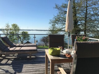 Genießen Sie einen privaten Badesteg und einen großen Balkon in Südwestlage.