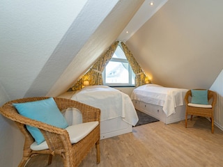 Die Wohnung hat einen großzügige Wohn-/Essbereich, 2 Schlafzimmer, geeignet für bis 4 Pers. Vom großen Süd - Balkon genießen sie einen traumhafthaften Blick über die Dächer von Wenningstedt bis zu den Dünen.