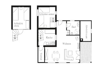 Zur Ausstattung gehören ein Schlafzimmer, eine urige Schlafgalerie aus...