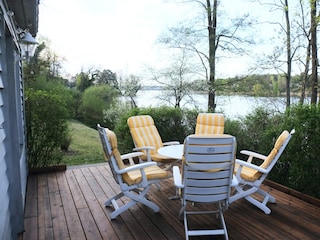 Entspannen Sie sich auf der großzügigen Terrasse mit Blick auf den See und Ihrem eigenen Dock.