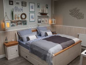 Die Ferienwohnung gleicht einem Ferienhaus mit großem Garten (inkl. Grill). Sie ist sehr schön (maritim) dekoriert, sehr sauber und zum Wohlfühlen. Die Gastgeber sind sehr nett und kinderlieb. Uns wurde extra ein Babybett auf Anfrage zur Verfügung gestellt. Auch das Ein-/& Auschecken wurde sehr flexibel gehalten. Alles super, schöner Urlaub, wir kommen gerne wieder!