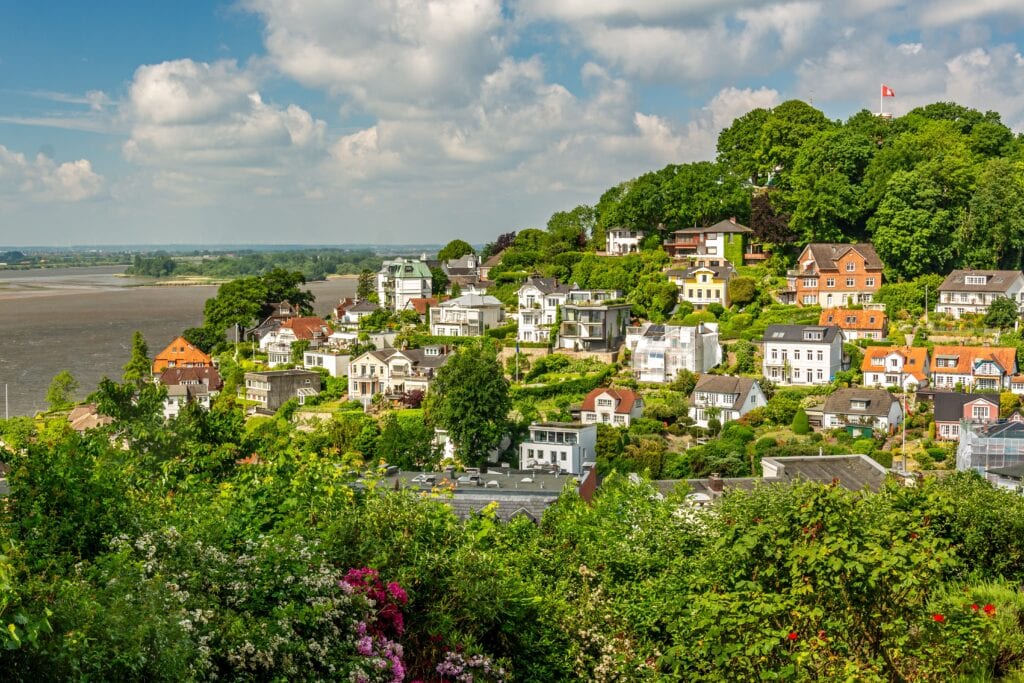 Das ehemalige Fischerdorf liegt am Hang direkt an der Elbe und ist durchzogen von unzähligen Treppen (über 5.000 Stufen insgesamt!). Die kleinen, weißen Häuschen mit ihren Reetdächern und blühenden Gärten staffeln sich den Berg hinauf. Autos haben hier kaum eine Chance, alles wird zu Fuß erledigt.