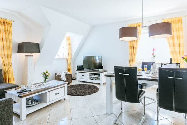 Wohnbereich der Ferienwohnung Burggarten Appartemente Neuleinigen