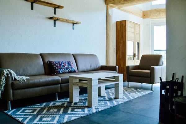 In der Berghütte GLÜCKlich im Bayrischen Wald wartet eine mit Altholz umgesetzte ursprüngliche Einrichtung auf dich und deine Liebsten. Doch auch der Komfort kommt bei dieser 2-Personen-Hütte in den Bergen definitiv nicht zu kurz. Durch die liebevolle Gestaltung und die einzigartigen Holz-Akzente überzeugt die Berghütte GLÜCKlich mit einer gemütlichen Atmosphäre. Auf dem bequemen Sofa im Wohnzimmer kannst du perfekt entspannen und kuschelige Stunden vor dem Steinofen verbringen. Dieser sorgt für wohlige Wärme und heizt die gesamte Hütte. Auch die private Sauna lädt zum Relaxen ein.