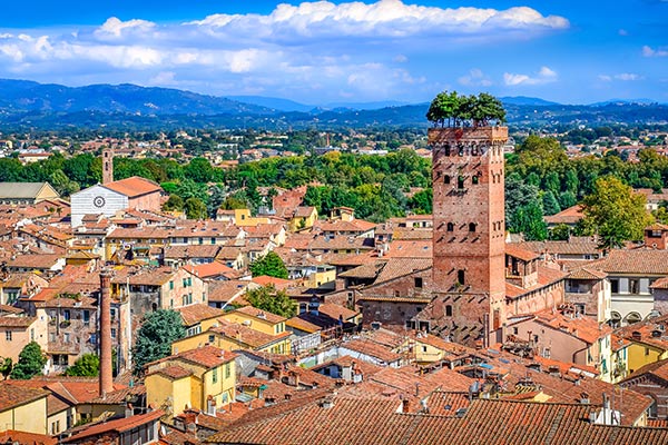 Nicht umsonst wird Lucca auch die „Stadt der 99 Kirchen“ genannt. Der Name ist Programm, denn an jeder Ecke findet ihr kleine oder große Gotteshäuser. Besonders schön sind die Kirche San Michele und die Kathedrale von Lucca. Ein weiterer Punkt, der beim Sightseeing nicht fehlen darf, ist der Torre Guinigi. Der historische Turm erhebt sich aus der Altstadt und sollte definitiv von euch erklommen werden. Das Besondere daran: die Bäume, die sich auf der Spitze des Turmes emporstrecken. 230 Stufen trennen euch von einer einmaligen Sicht über Lucca. Einen kleinen Geheimtipp haben wir auch noch im Gepäck: der Palazzo Pfanner. Der kunstvoll angelegte Garten ist eine echte Oase der Ruhe und besticht durch kleine Wege, Zitronenbäume und einem Springbrunnen. Für eine kleine Sightseeing-Pause ist dieser Ort perfekt.